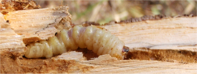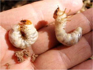 【右】この2匹のクワガタは、昨年ここから持ち帰った幼虫が成虫となったものです。