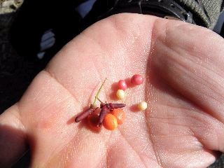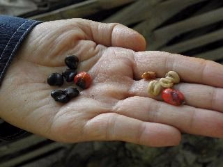 【左】コブシとタイサンボクの種(黒いのがコブシ)【右】ヒメユズリハの種子