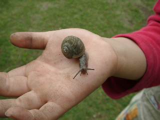 【左】昨日の雨のせいか、かたつむりがいました 【右】デビュー戦、グー(good)でした