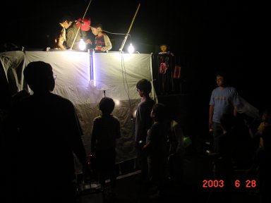 明るい中、発電機を使って水銀灯を点灯させました。人がたくさん集まってきました。しかし、いつまでも白々明るいので虫はあまり集まりません。水銀灯を点灯させたまま懐中電灯を持参して、森の中の生き物ウオッチングすることにしました。森の中で、観察できたものを一部紹介します。