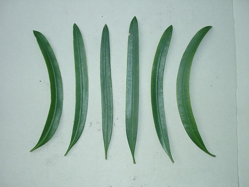 イヌマキの葉をとってみると、まっすぐな葉は少ないです
