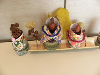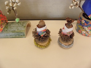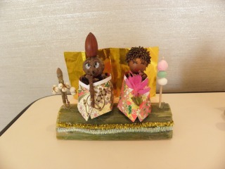 【左】熱心に「雛人形」作りに取り組んでいます。 【右】勇ましい作品が出来ました。