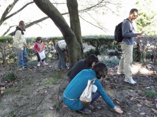最初に商工センターから農業センターを通って大池公園のガチョウの広場までゆっくり歩いてもりの観察やドングリ探しをしました。寒ツバキやスノーフレーク(スズランズイセン)、オキザリス、トウカイタンポポ、満開のオオイヌノフグリ、東海市立農業センターのたわわになっている美味しそうなドラゴンフルーツ、ヤマノイモやクズの実、マテバシイやアベマキなどのドングリや松ぼっくりなど、いろいろなものを集めることができました。