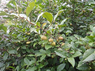 【左】キマダラカメムシ 【中】チャノキ (茶の木) 【右】きのこ(幼菌)