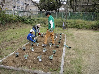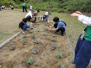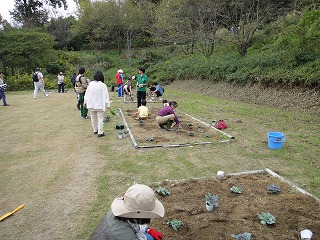 【左】生きもの体操 【中】芝生広場 ハボタン花壇 【右】同左