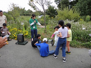 【左】芝生広場斜面 チガヤ植栽 【中】アサギマダラのお話 【右】ワークショップ