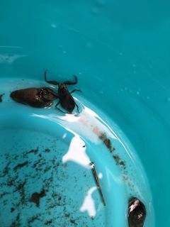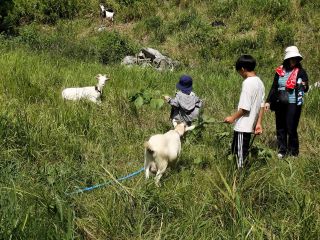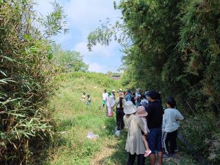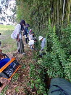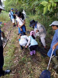 駐車場に入り切れないほど大勢来て、まずパニックになってしまいました。猛暑と少雨に台風の影響もあって、更に今年は砂の流入が激しくザリガニもドジョウもほとんどいない状況でした。釣りは早々に諦めて、水路の泥をすくって生きもの探しに切り替えました。ヤギに餌やりしたりアクアリウムを作る子どももいてそれなりに楽しんでいたようです。(記:平松裕)