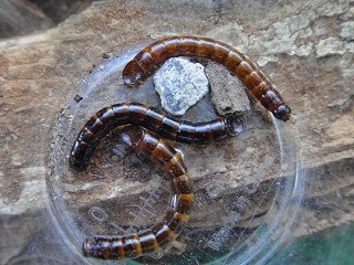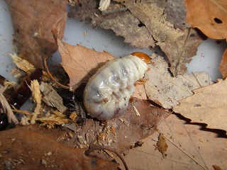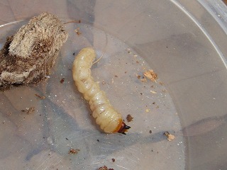 【左】キマワリ 幼虫 【中】コクワガタ 幼虫 【右】コメツキムシ 幼虫