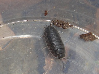 【左】ワラジムシ 【中】ヤマトゴキブリの幼虫 【右】コアシダカグモ