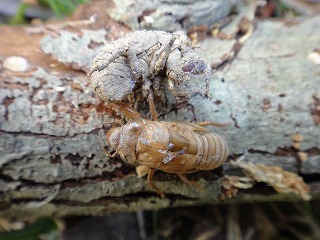 【左】アシナガバチ 営巣 【中】ツクツクボウシ 抜け殻 【右】テイカカズラ 種子