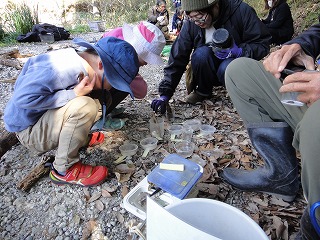 【左】朽ち木解体 観察中 【中】生きもののお話 【右】同左