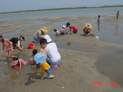 【右】家族で来て、子ども達と砂遊びやシジミ採りをしています。