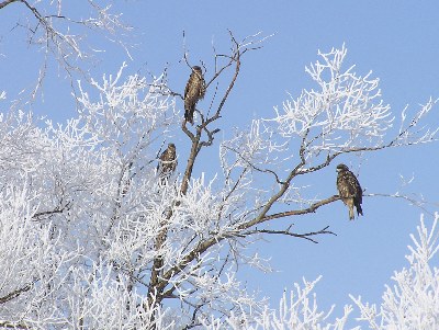 【左】トビもタカの仲間。高見の見物です。