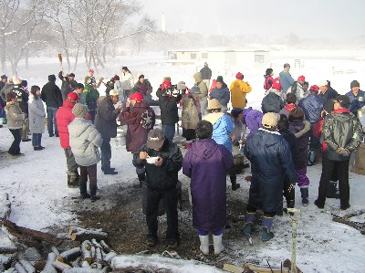 【左】今年は雪のため例年より参加者は少なめでしたが、たくさんの人が集まりました。