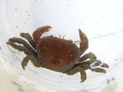 【左】ヒメアカイソガニをたくさん見ました。 【右】クロヘリアメフラシがちょうど卵を産みました。