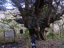 【左】噴火を司る神が宿るといわれている迷子椎(まいごじい)。