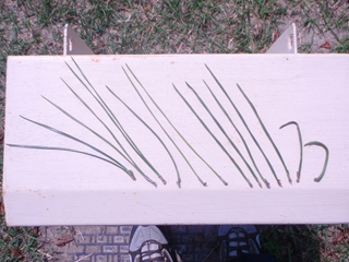 【右】一葉松の葉(すべて1束1葉のもの)の拡大…松の葉が“ねじって”いることを初めて知った…