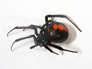 【中】セアカゴケグモ(メス) 腹面 (腹部腹面にも赤い模様があります。)