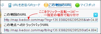 3.[この地図のURL]らんをクリック→文字が反転→そこで右クリック→コピー→→