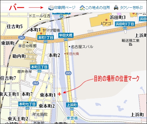 1.地図でここだと思う所をクリックして決定する(マーク