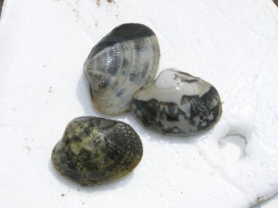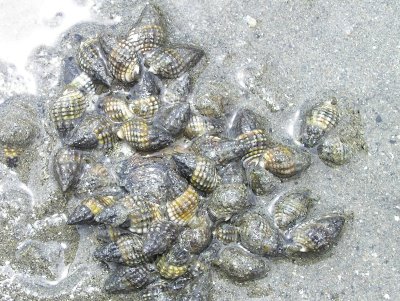 【左】アサリです。ここの海岸は養殖をしてますのでアサリを採るときは入場料が要ります。