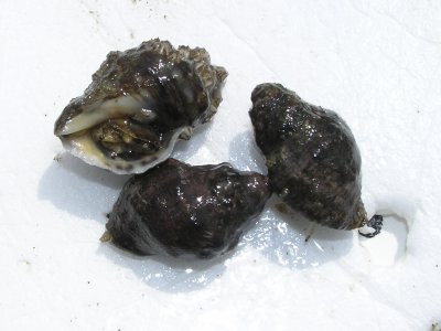 【右】イボニシです。イボニシは肉食でフジツボなどを食べます。