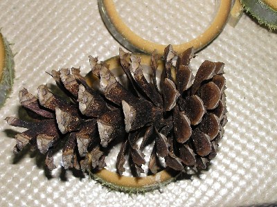 【左】カラマツの球果です。箭比神社にはありません。だれかのプレゼント?