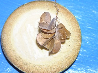 【左】カラスウリはリースに出来ますが色が変わります。