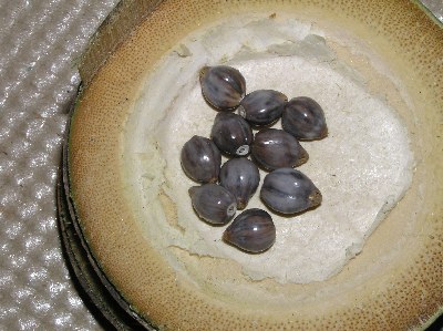 【右】ムクロジの種子です。昔、石鹸として使われていました。追羽根の玉としても使われました。