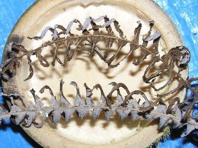 【左】ヤマノイモの種。中に紙みたいな種が入っています。