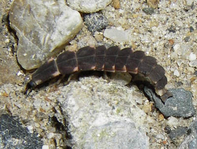 【右】クロマドボタルの幼虫 お尻が光ります。成虫は光りません。