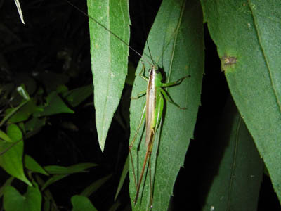 【左】オナガササキリ 虫の音はたくさん聞こえましたが姿が見えたのはこれだけでした。