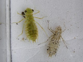 【中】ウスバキトンボが水槽に中で脱皮しました。