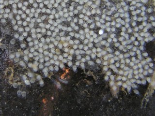 【右】石の下にたくさんの卵塊がありました。ハゼの仲間でしょうか。今回はハゼ科の魚は確認できませんでした。