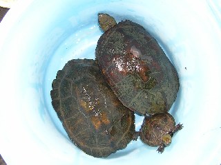 【中】今回は、アカミミガメが見られず、イシガメばかりでした。