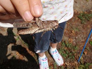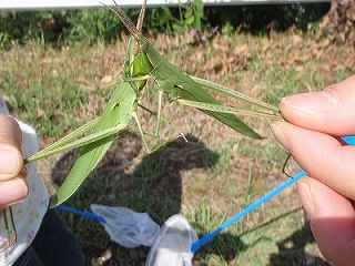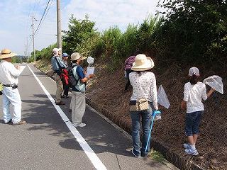 【左】始めのあいさつ  【右】道端の草地にショウリョウバッタがたくさんいました