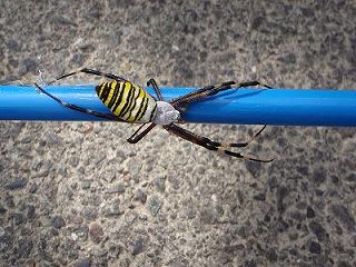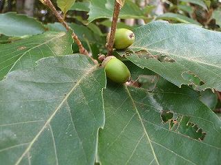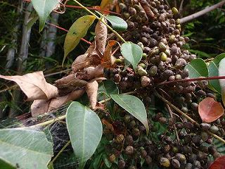 タモ網の柄にとまったナガコガネグモ    コナラのどんぐり     ハゼの実