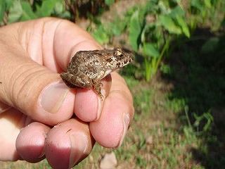 やっとつかまえた小さなヌマガエル    スベリヒユ      ツユクサ