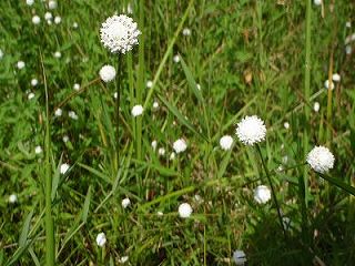 【左】満開状態のシラタマホシクサ…湿地にて  【右】行きと同じ道を帰って、終わりのあいさつ