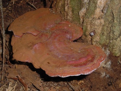 【左】コフキサルノコシカケです。ガンの増殖を押さえる働きがあることで有名になりました。