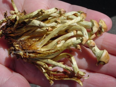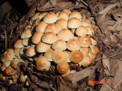 【左】ニガクリタケ(強毒)です。生えている様子、色もおいしいクリタケに似ています。