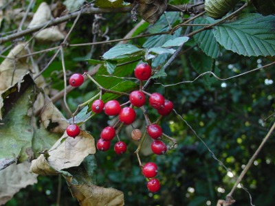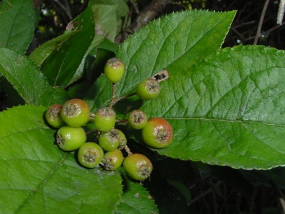 【左】カマツカです。今からミヤマガマズミみたいに赤くなります。名前は鎌柄(かまつか)からです。
