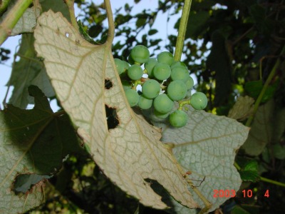 【右】野性ブドウのエビヅルです。黒くなると食べられます。野生動物と分け合って食べられるくらいあるといいですね。