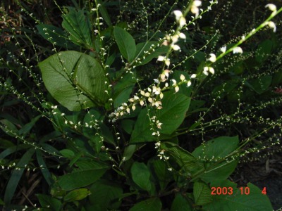 【左】ミズヒキの花で、白いものをギンミズヒキといっています。祝の包装に使う水引(みずひき)から名前が付きました。