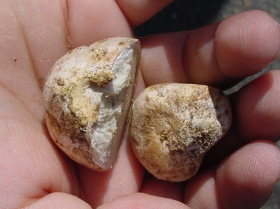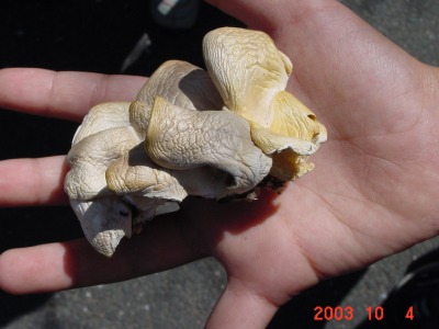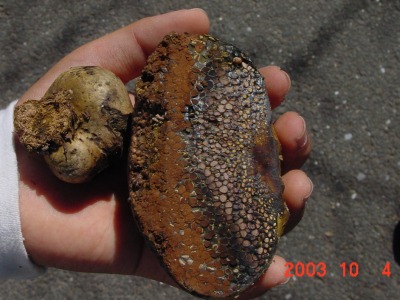 【右】ヒメカタショウロの若いのです。少し毒があります。団子状で古くなると中心が黒くなります。