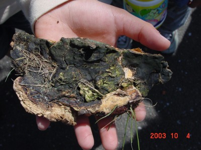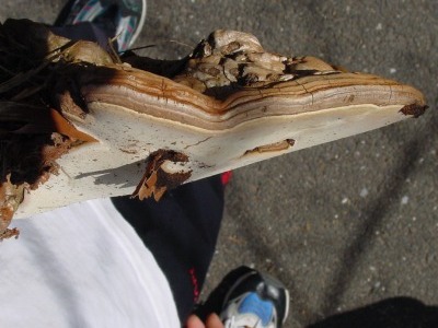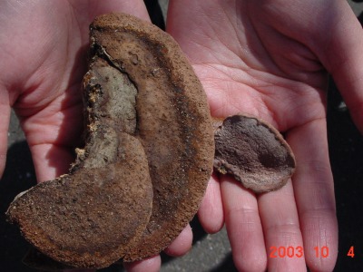 【右】ベッコウタケの老菌だと思います。若く元気な時は、色が鼈甲(べっこう)色になります。