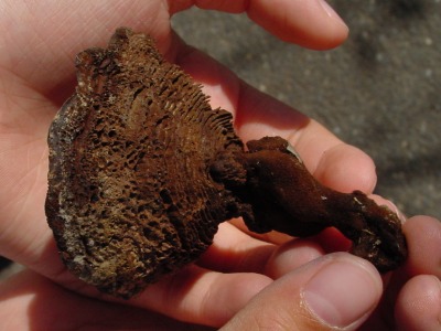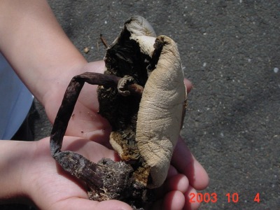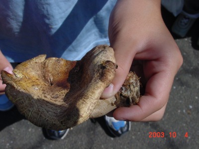 【右】ノウタケの上の部分が朽ちて無くなっています。若いときは食用になります。