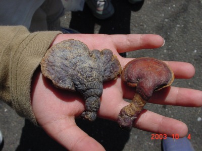 【左】マンネンタケで字のごとく万年茸(まんねんたけ)不老長寿などの効用があると珍重されています。