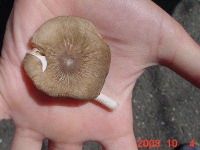 【右】食用になるウスキモリノカサです。この写真は老菌で色がよくありません。