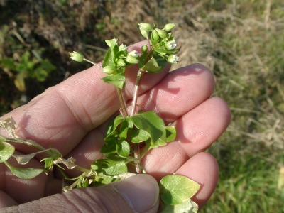 【右】「梅の館」の土手を直ぐ下りた所に、ハコベがありました。